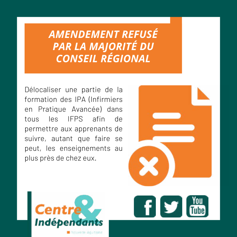 Notre amendement visant à délocaliser une partie de la formation IPA rejeté !